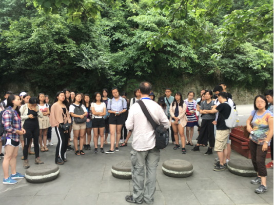 2017365英国官网UIP国际课程周第四季“合作交流·智绘乡村”交流营郫都区调研组于7月4日从望江校区及江安校区出发,先于上午10点到达都江堰景区,参观都江堰的水利工程。在参观过程中,艾丹教授向各位介绍都江堰水利工程的历史、概况和作用等。而后参与本次郫都区调研组的师生一同步行至鱼嘴处,合影留恋。